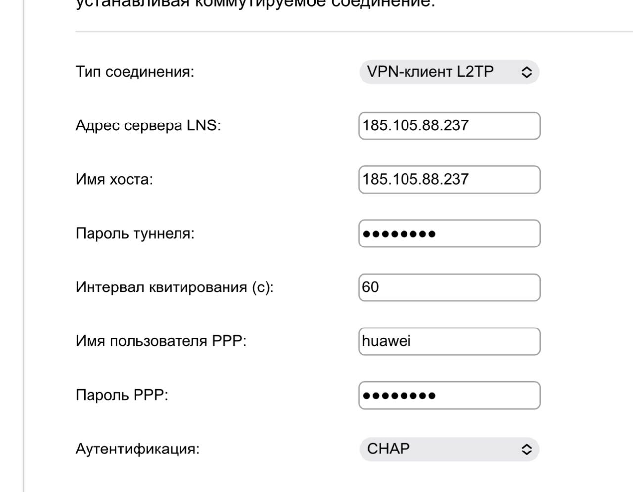 У меня возникла проблема: я использую роутер huawei b315s-22 с мобильной симкой. К роутеру по LAN подключен Zennio Remote 41 PRO (умный дом). Из-за блокировок серверов Амазона умный дом не имеет связи с серверами и я не могу управлять им удаленно. Поэтому я решил поставить VPN на роутере. Купил виртуалку и настроил L2TP vpn. С windows и iphone подключился, впн работает. Зашел в настройки роутера, ввел данные и ничего. Делал все с телефона удаленно, так что я даже не знаю причину, почему не удалось подключиться. Может быть у кого-то есть опыт в этом, советы и решения?